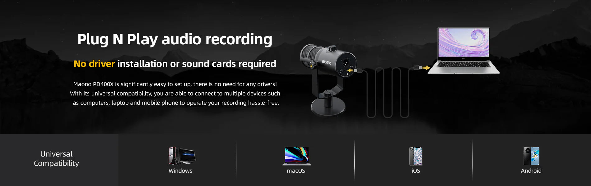Nein, Maono Link ist kein Treiber. Sie müssen es nicht installieren, um das Mikrofon zu verwenden. Die Maono Link Desktop-App bietet zusätzliche Funktionen, um das volle Hardwarepotenzial des Maono PD400X freizusetzen.
